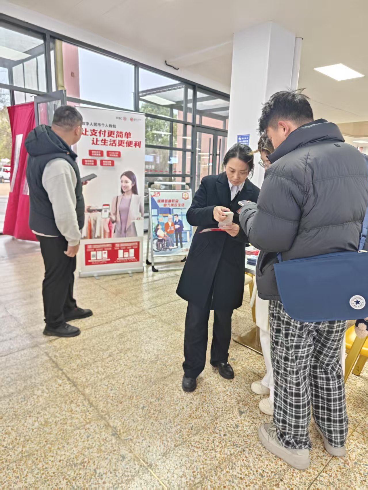 活动现场,工商银行工作人员通过设立咨询台、发放宣传折页等方式,向师生们详细讲解了数字人民币的定义、特点、应用场景以及使用方法。工作人员还现场指导师生下载数字人民币APP,并体验了数字人民币钱包的开通、充值、支付等操作流程。